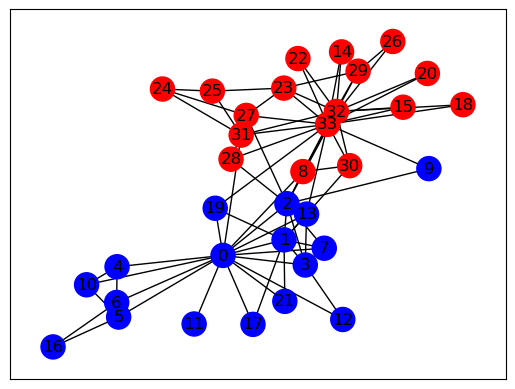 The goal of community detection algorithms is to identify such factions (or communities) based solely on the network structure, without any knowledge of the actual social dynamics of the agents involved. Using the modularity maximization approach, one can obtain the following partition of Zachary’s karate club network, which mirrors the split in the club that occurred in reality.